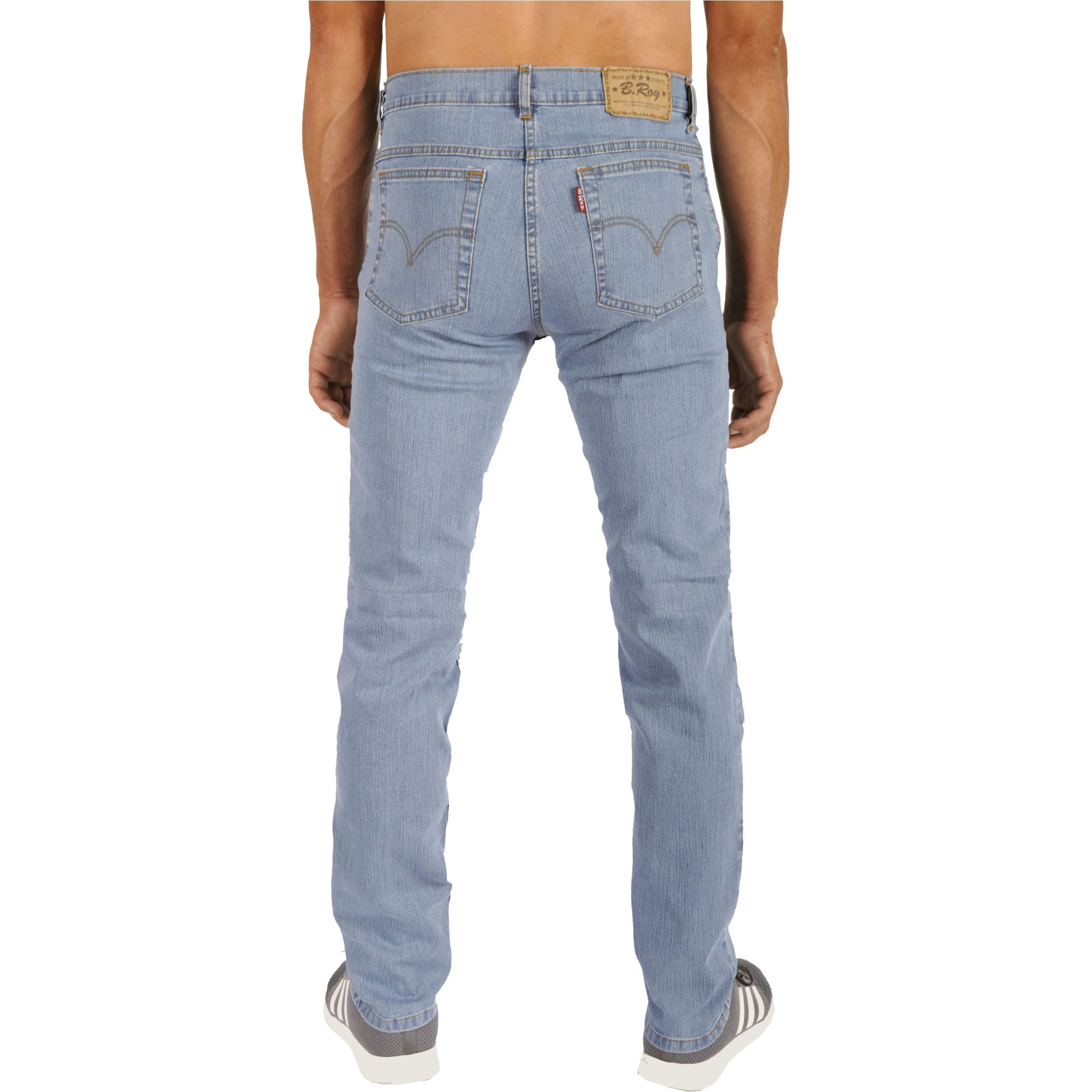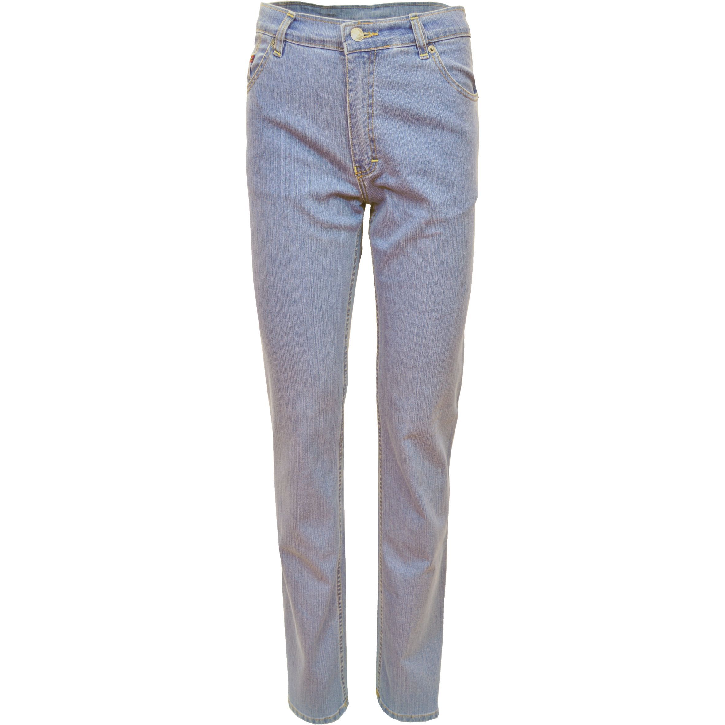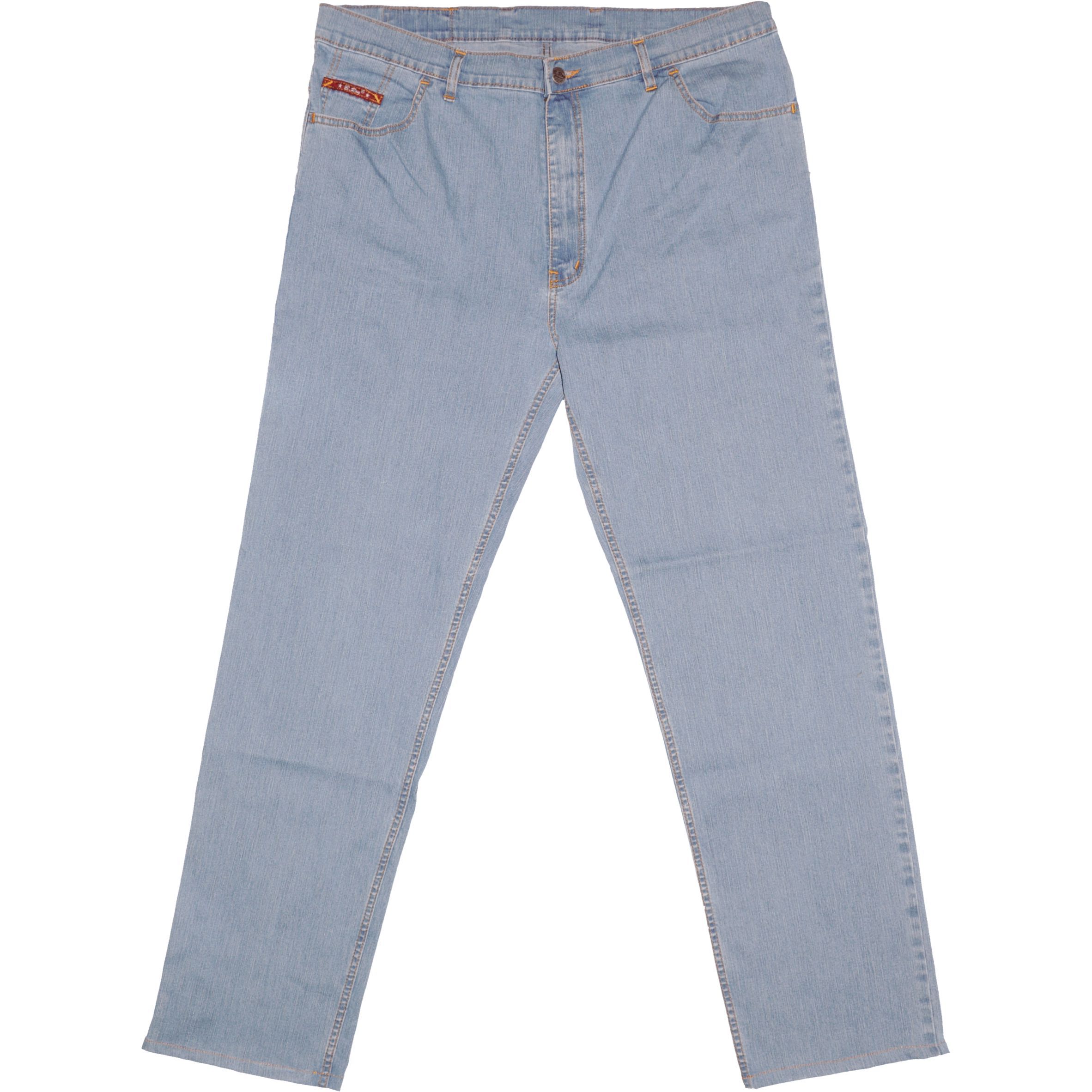 Vékony anyagú, nyári férfi farmernadrág. Világoskék árnyalatú, amely csak avatott, tehát egységes színezetű, tűzése a klasszikus farmerekre jellemzően narancssárga. Hagyományos jeans fazonú, azaz szárai enyhén bővítettek, derékrésze kissé emelt. Prémium minőségű alapanyaga szálkoptatott szövésű, 97% pamut, 3% elasztán, ezért puha és kellemesen rugalmas. Ötzsebes modell, amely szegecsek nélkül készült, ezért fémallergiásoknak is jó választás lehet.