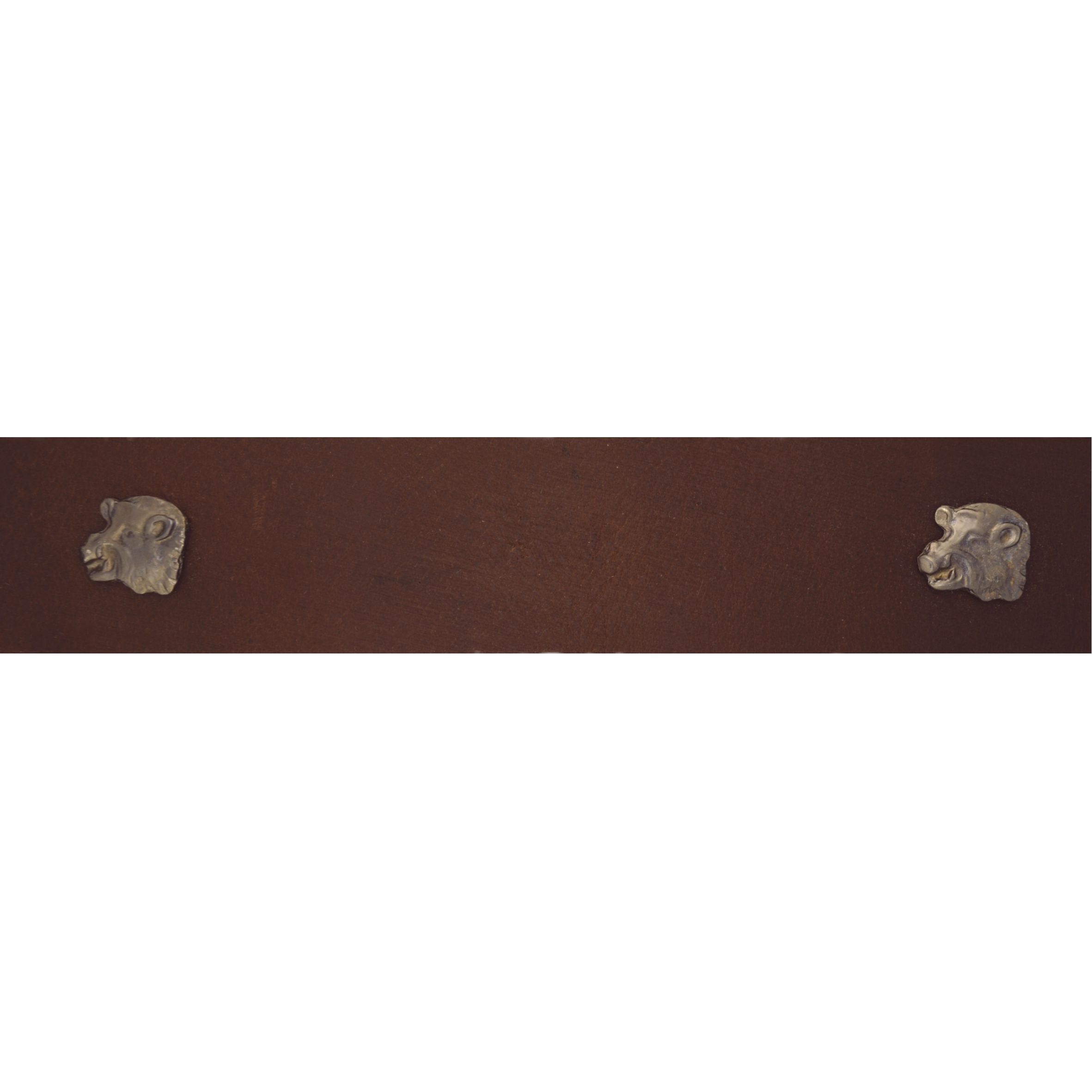 <p>Szélesített bújtatóján egy nagyobb, külső részén 6 db kisebb szegecselt vaddisznó fej motívum díszíti.</p>